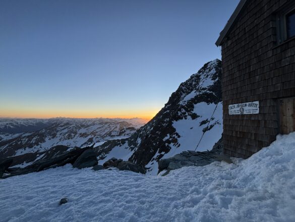 Do koče prispeva ravno ob sončnem zahodu, tistem, ki ga sicer vidiš na razglednicah, a v živo vedno malo bolj zadene. V zimski sobi pa, recimo, da nisva bila edina z dobro idejo. Matej s svojimi diplomatskimi sposobnostmi izpogaja skupni mesti na eni izmed postelj. Skupni: dobesedno. Trije na vsaki. Ostali po tleh, klopcah, celo stolih. Noč ni bila ravno tiha izkušnja, ampak kdo bi se pritoževal, ob 5:30 se vsi že prebujamo.