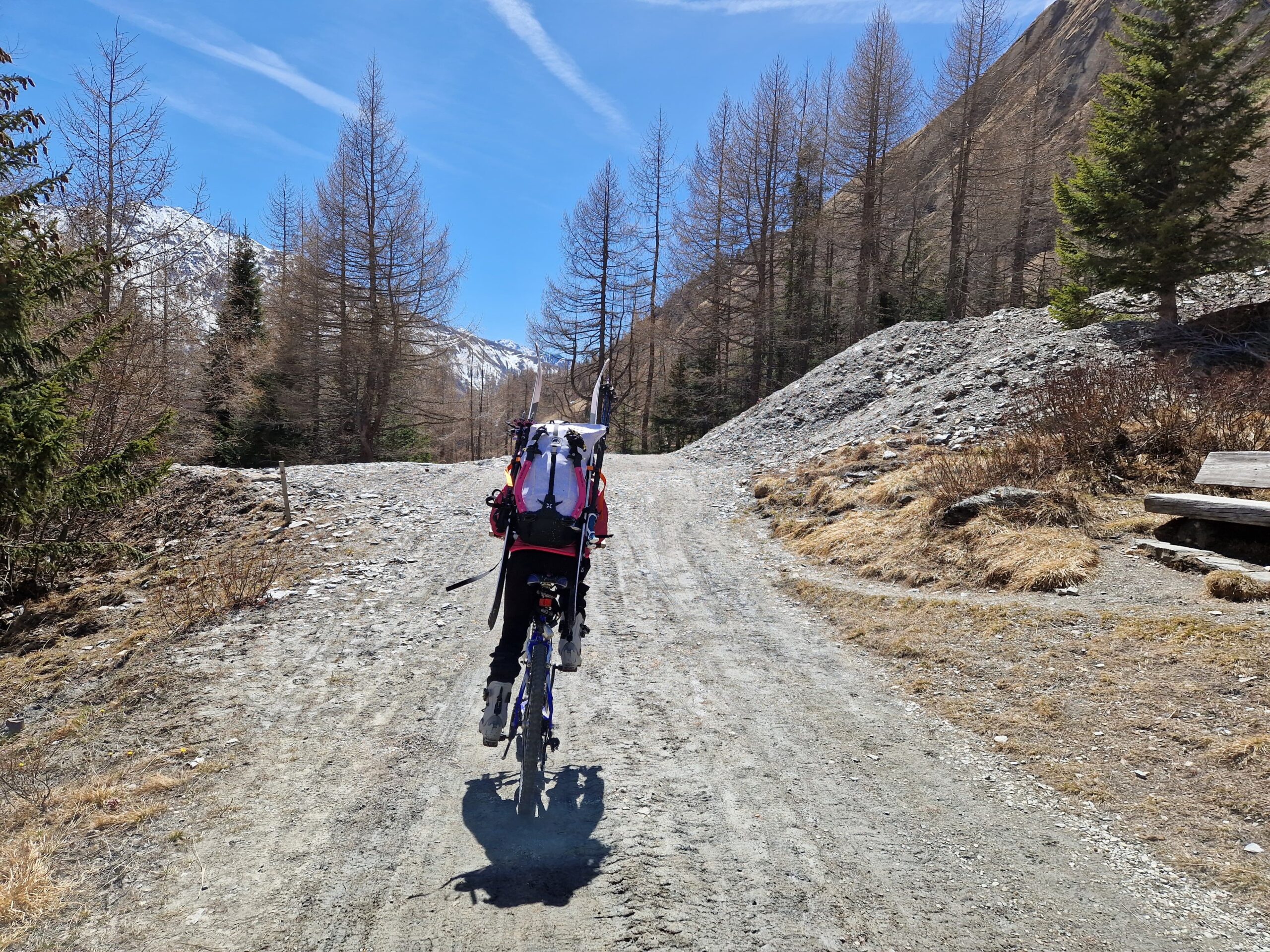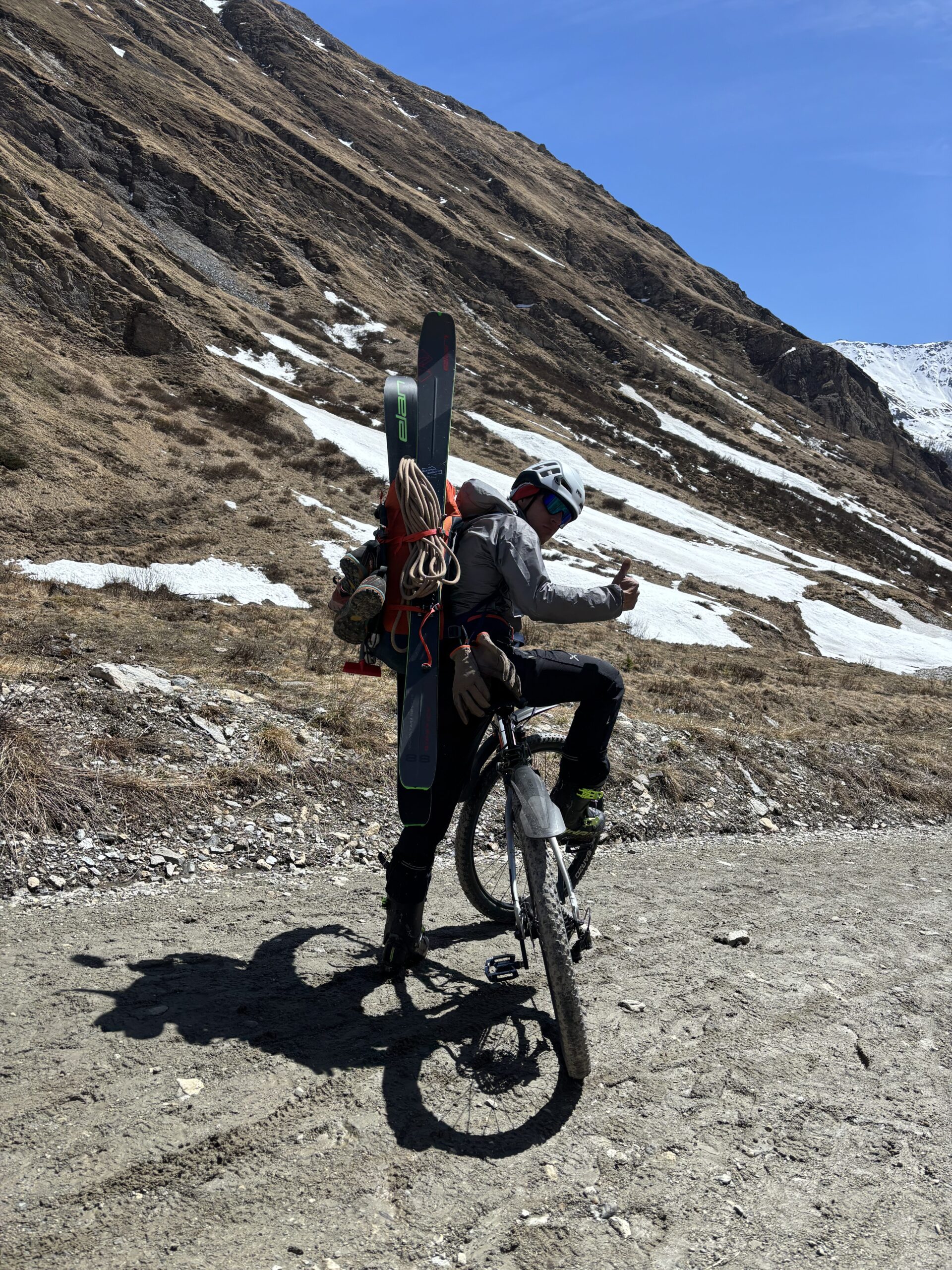 Pri kolesih se samo še spogledava in sedeva nanje kar v pancarjih. Eleganca na dveh kolesih, verzija alpinist.